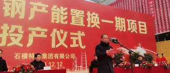 12月12日,董事長魏新民出席泰安特種用鋼產(chǎn)能置換一期項(xiàng)目投產(chǎn)儀式并致辭。