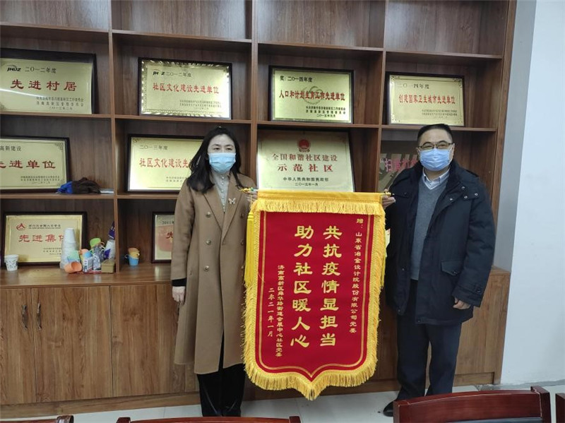 會談結束后,社區黨委向公司黨委贈送了錦旗。